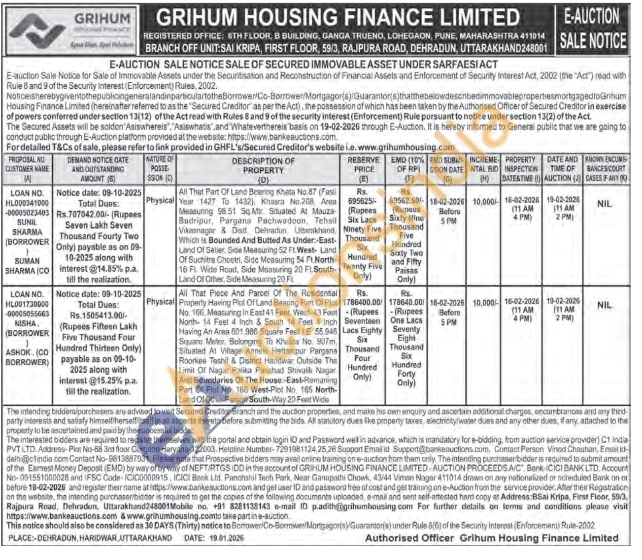 1) All That Part Of Land Bearing Khata No.87 (Fasli Year 1427 To 1432), Khasra No.208, Area Measuring 98.51 Sq.Mtr. Situated At Mauza Badripur, Pargana Pachwadoon, Tehsil Vikasnagar & Distt. Dehradun, Uttarakhand, Which is Bounded And Butted As Under: East Land Of Seller, Side Measuring 52 Ft. West- Land Of Suchitra Choetri, Side Measuring 54 Ft.North-16 Ft. Wide Road, Side Measuring 20 FL.South-Land Of Other, Side Measuring 20 FL