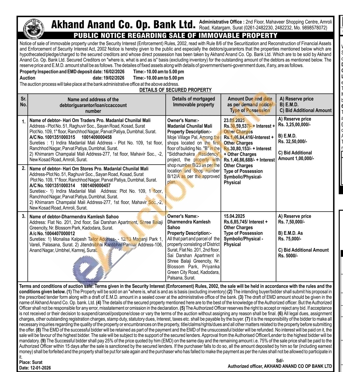 Owner's Name:-Madanlal Chunilal Mali Property Description:-Moje Village Pal, Among the shops located on the first floor of building No. "B" in the "Siddhachakra Residency" project, the property with shop number B/23 as per the location and Shop number B/12/A as per the approved plan.
