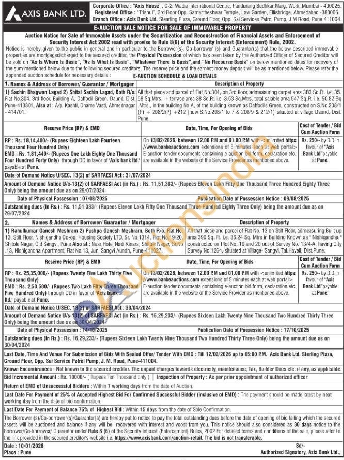 All that piece and parcel of Flat No.304, on 3rd floor, admeasuring carpet area 383 Sq.Ft. i.e. 35. 58 Sq. Mtrs. + terrace area 38 Sq.Ft. i.e. 3.53 Sq.Mtrs. total salable area 547 Sq.Ft. i.e. 50.82 Sq Mtrs., in the building No.A, of the building known as Daffodils Green, constructed on S.No.208/1 (P) +208/2(P) +212 (now S.No.208/1 to 7 & 208/9 & 212/1) situated at village Daund, Dist Pune
