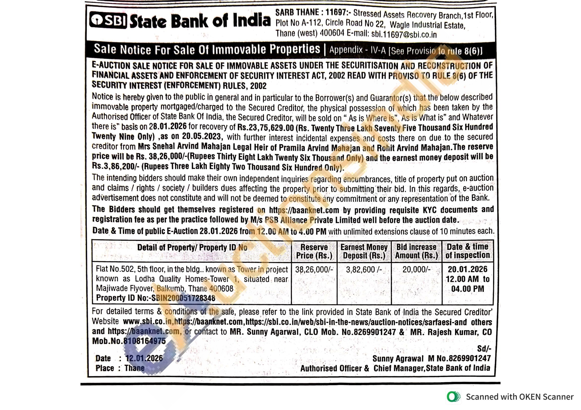 Contact MR. Sunny Agarwal, CLO Mob. No.8269901247 & MR. Rajesh Kumar, CO Mob.No.8108164975