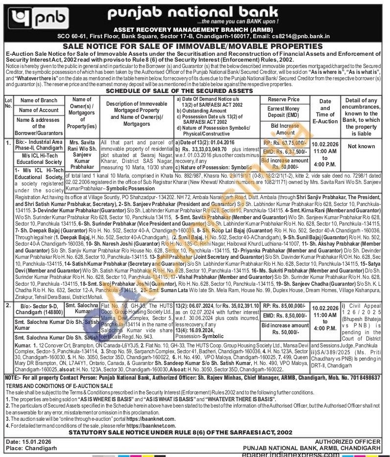 Authorized Officer: Sh. Rajeev Minhas, Chief Manager, ARMB, Chandigarh, Moh. No. 7018498637
