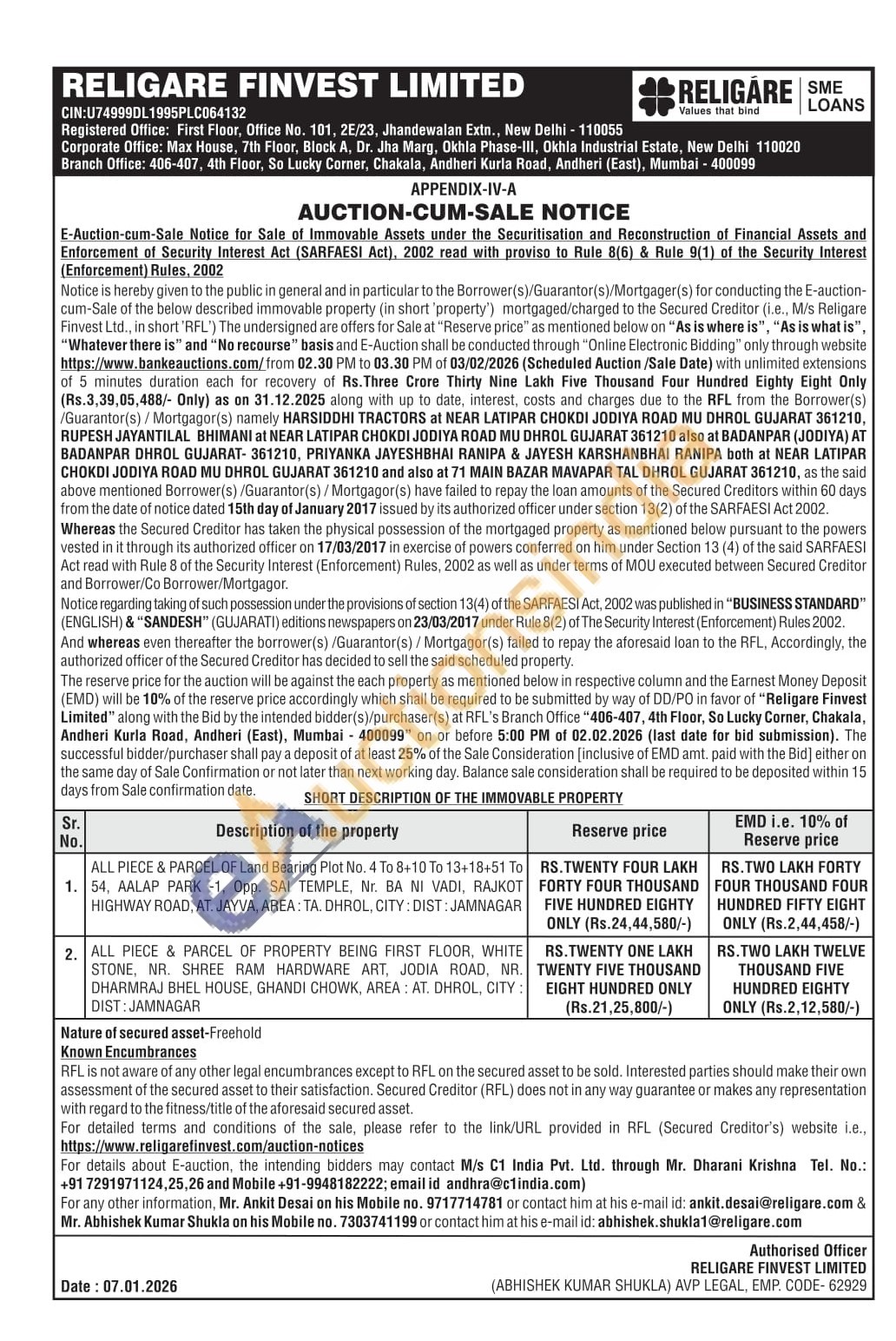 Mr. Ankit Desai on his Mobile no. 9717714781,Mr. Abhishek Kumar Shukla on his Mobile no. 7303741199