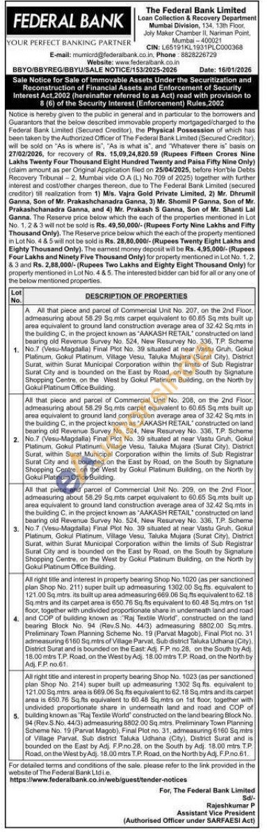 All that piece and parcel of Commercial Unit No. 208, on the 2nd Floor, admeasuring about 58.29 Sq.mts carpet equivalent to 60.65 Sq.mts built up area equivalent to ground land construction average area of 32.42 Sq.mts in the building C, in the project known as "AAKASH RETAIL constructed on land bearing old Revenue Survey No. 524, New Resurvey No. 336, T.P. Scheme No.7 (Vesu-Magdalia) Final Plot No. 39 situated at near Vastu Gruh, Gokul Platinum, Gokul Platinum, Village Vesu, Taluka Mujara (Surat City), District Surat, within Surat Municipal Corporation within the limits of Sub Registrar Surat City and is bounded on the East by Road, on the South by Signature Shopping Centre, on the West by Gokul Platinum Building, on the North by Gokul Platinum Office Building