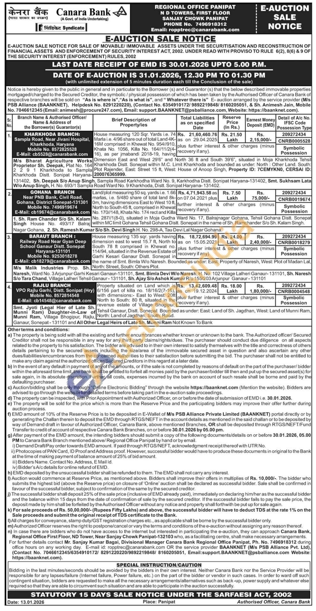 House measuring 135 sqr yards having dimension east to west 15.7 It, North to 114/94, stualed the Revenue Estate of South 78 it comprised in Khewat no Garhi Kesan Ganaur Distt. Sonepat in the name of Smt. Bimla W/o Naresh. Bounded as under: East: Property of Naresh, West: Plot of Madan Lat North: Street, South: Others Plot