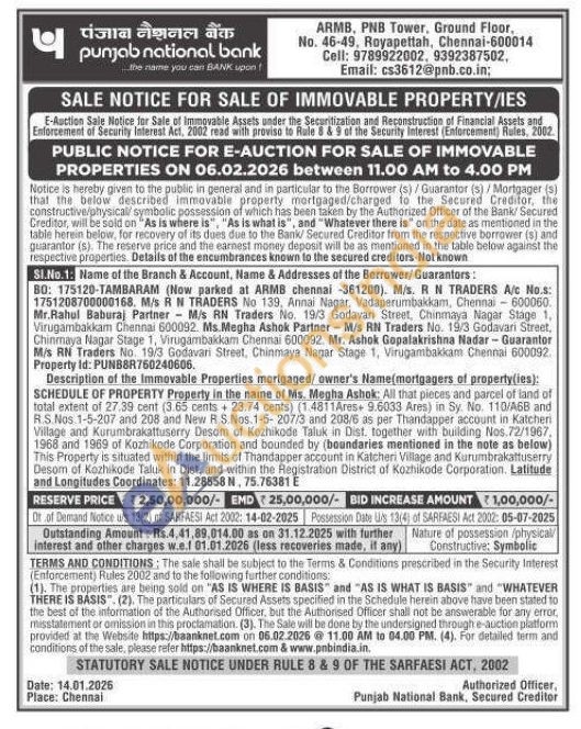 All that pieces and parcel of land of total extent of 27.39 cent (3.65 cents + 23.74 cents) (1.4811Ares+ 9.6033 Ares) in Sy. No. 110/A6B and R.S. Nos. 1-5-207 and 208 and New R.S.Nos. 1-5-207/3 and 208/6 as per Thandapper account in Katchern Village and Kurumbrakattuserry Desom of Kozhikode Taluk in Dist. together with building Nos.72/1967, 1968 and 1969 of Kozhikode Corporation and bounded by (boundaries mentioned in the note as below) This Property is situated within the limits of Thandapper account in Katcheri Village and Kurumbrakattuserry Desom of Kozhikode Taluk in Dist., and within the Registration District of Kozhikode Corporation.