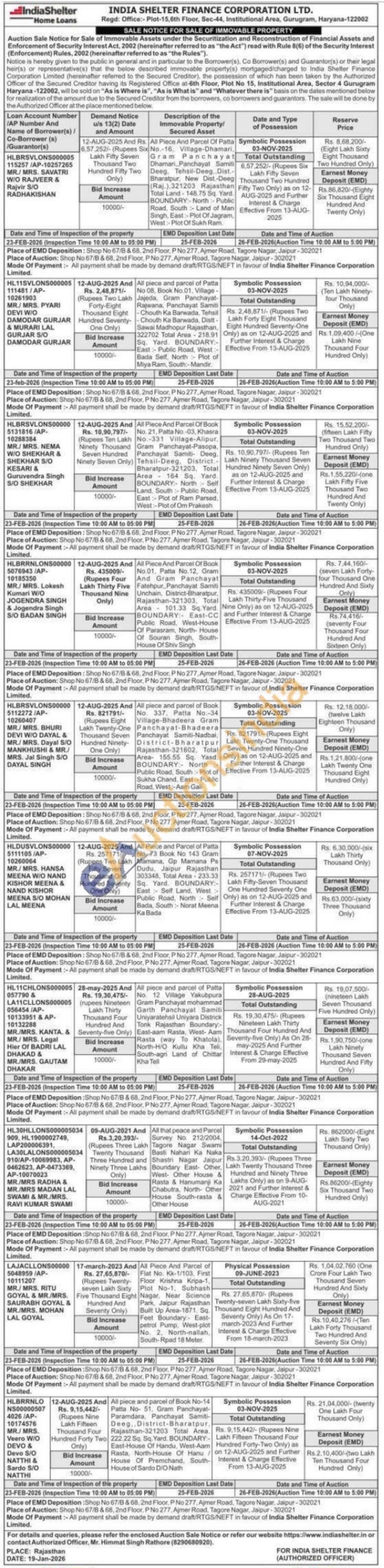 All piece and parcel of Book No. 337. Patta No.-34 Village-Bhadeera Gram Panchayat-Bhadeera Panchayat Samiti-Nadbal, District-Bharatpur Rajasthan-321602, Total Area- 155.55 Sq. Yasd. BOUNDARY: North-Public Road, South Plot of Sukha Chand, East:- Public Road, West:-Aam Galli