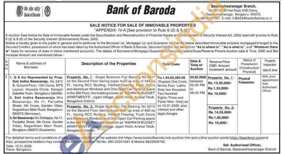 Property No. 1 Single Bedroom Flat Bearing No A211 on the Second Floor having super built-up area of 549 sq Ft., having RCC Roofing. Vitrified Flooring, Flush Doors and Aluminum Windows and One Open Car Parking space in the Stilt Floor, the building known as "ASHRAYA BUDGET APARTMENTS", Jigani Village, Jigani Hobli, Anekal Taluk, Bangalore District
