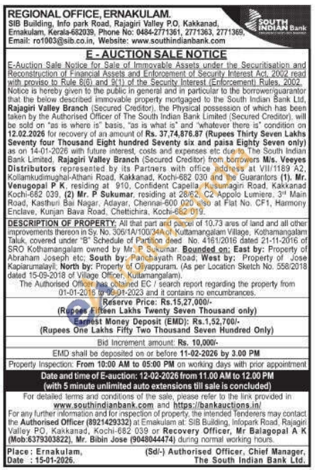 Recovery Officer, Mr Balagopal A K (Mobile No : 6379303822) / Mr. Bibin Jose (9048044474)
