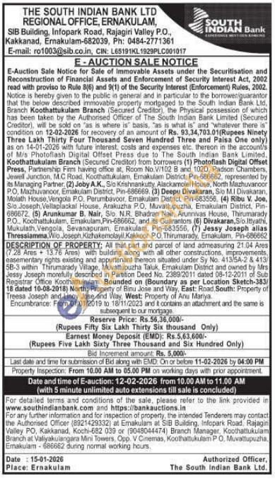 Authorised Officer (8921429332) / Branch Manager Koothattukulam Branch(9048044474)
