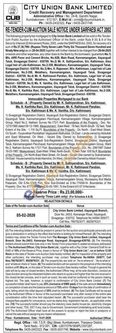 Sivagangal Registration District, Ilayangudi Sub-Registration District, Sivagangai District, Ilayangudi Taluk, Kannamangalam Panchayat, Kannamangalam Village, Kannamangalam Group, Ward No.2. Natham Survey No.172/1 Part. Boundaries of the Property: Doc. No. 1273/1985 dated 09-12-1985. Measurement: East-West: 18 feet, North-South: 62 feet. Total Extent of the Site: 1,116 Sq Ft. Boundaries of the Property On North-East-West Street, On South Oyyavathan Pandathan Vagaiyarah Nathukkal, On East-Lands owned by Abdullah and Syed Mohamed, On West Vacant Site, Owned by Subramanian. 2) Sivagangai Registration District, Ilayangudi Sub-Registration District, Sivagangai District, Ilayangudi Taluk, Kannamangalam Panchayat, Kannamangalam Vilage, Kannamangalam Group, Ward No.2, Natham Survey No.172/1 Part. Boundaries of the Property: Doc. No. 299/1987 Dated 16-03-1987. Measurement: East-West: 9 feet, North-South: 70 feet Total: 630 Sq. ft. Boundaries of the Property: On North-East-West Street, On South-Vacant Site owned by Subramanian, On East-House owned by Arabi Alamsha, On West-Vacant Site Owned by Akkari Hussain.