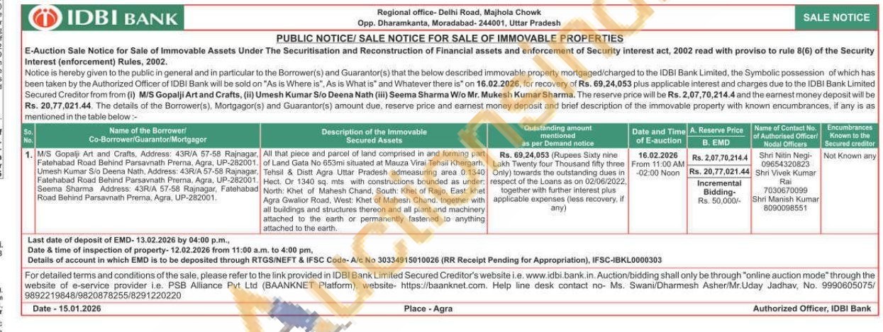 All that piece and parcel of land comprised in and forming part of Land Gata No 653mi situated at Mauza Virai Tehsil Khergarh, Tehsil & Distt Agra Uttar Pradesh admeasuring area 0.1340 Hect. Or 1340 sq. mts with constructions bounded as under: North: Khet of Mahesh Chand, South: Khet of Rajjo, East: khet Agra Gwalior Road, West: Khet of Mahesh Chand, together with all buildings and structures thereon and all plant and machinery attached to the earth or permanently fastened to anything attached to the earth.