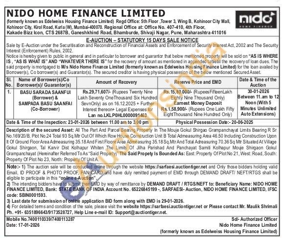 Description of the secured Asset: All The Part And Parcel Bearing Property In The Mouje Gokul Shirgao Grampanchayat Limits Bearing R Sr No.169/20/B, Plot No 24 Total 93 Sq. Mr Out Of Which Row House Construction Unit B Total Admeasuring Area 46.50 Including Construction Upon It Of Ground Floor Area Admeasuring 35.18 And First Floore Area Admeasuring 35.18 Sq.Mtr And Total Adreasuring 70.36 Sq Mtr Situated At Village Gokul Shirgaon, Tal Karvir Dist Kolhapur Whiten The Limits Of Jilha Parishad And Panchayat Samiti Kolhapur Mouje Shirgaon Gokul Grampanchayat (Hereinafter Referred To As "Said Property)" The Said Propety Is Bounded As: East: Property Of Plot No 21, West: Road, South: Property Of Plot No 23, North: Property Of Unit A