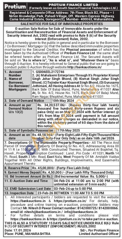 7. Descriptions Of The Immovable Property/Properties:- All The Piece And Parcel Of Immovable Property Of Bearing Sr No. 4/2, Admeasuring Area 00 H 11 R le 11000 Sq Ft. With Constructed Thereon, Situated At Bopkhel, Tq. Haveli, Property Description Continued: Land, Pin Code: 411031, North 14 Ft. Road, South 3 Mtr. Road, East Nala, West Property Of Mr. Amitabh Vaidya Together With All Other Rights, Buildings, Improvements, And Easements Appurtenant Thereto