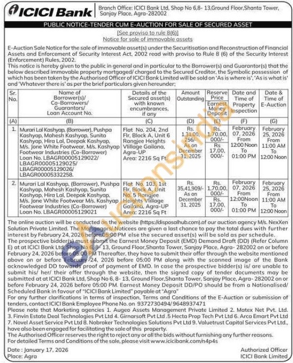 Flat No. 103, 1st Flr. Block A, Unit No. 5 Rangjee Heights Viillage Gailana, Agra-UP Area: 2216 Sq Ft