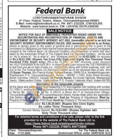 All the piece and parcel of the land measuring 5.70 Ares together with building with number TC 1/297(1) existing andior to be constructed and all other improvements thereon comprised in Re-Sy No. 295/2 (Old Sy No. K 280(2) in Block No. 11 of Kazhakuttom Village Thiruvananthapuram Taluk, Thiruvananthapuram District, Kerala State within the registration Sub District of Kazhakuttom, Bounded on East by: Property of Vidyadharan, West by: Property of Haiju North by: PWD Road, South by: Property of Thomas Dcruz and Jaseentha