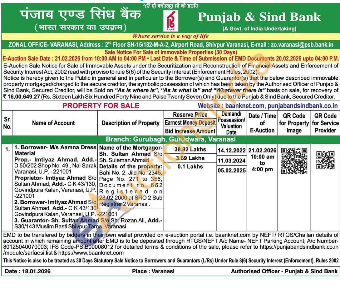 Details of the property: Bahi No. 2, Jild No. 2345, Page No. 271 to 356, Document no. 662 Registered on 28.02.2000 at SRO 2 Sub Registrar 2 Varanasi.