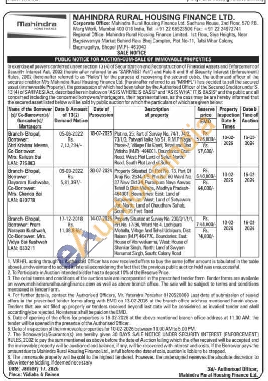Property Situated at Survey No. 230/3/1/1/1, PH.No. 17/30, Ward No 4, Lodhipura Mohalla, Village And Tehsil Udaipura, Dist. Raisen (M.P) 464770, Boundaries: East: House of Vishwakarma, West: House of Shankar Singh, North: Land of Swyam Hanumat Singh, South: Colony