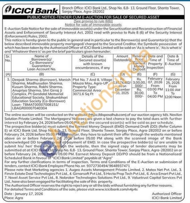 Plot No. 7 And 8. Village Mauza Mau, Agra-UP Property Type: Commercial Area: 3071.6 Sq Ft