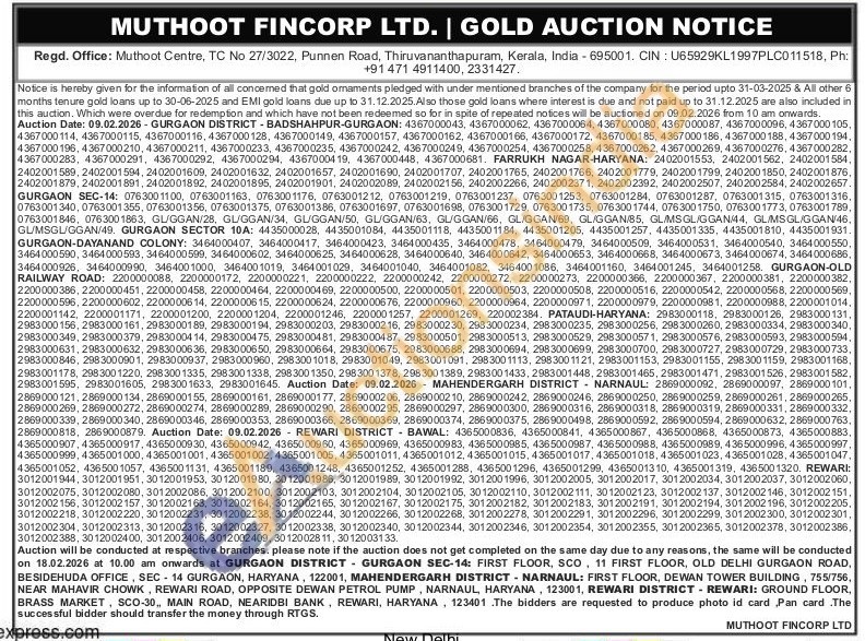 Muthoot Fincorp Ltd Gold Auctions Auction in Thiruvananthapuram