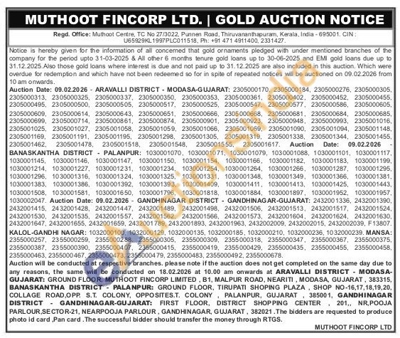 Muthoot Fincorp Ltd Gold Auctions Auction in Thiruvananthapuram