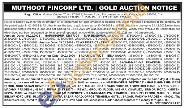 Muthoot Fincorp Ltd Gold Auctions Auction in Thiruvananthapuram