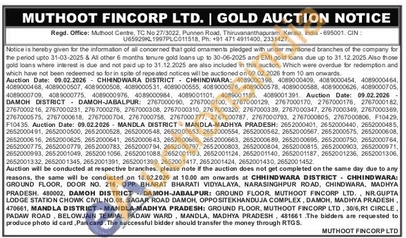Muthoot Fincorp Ltd Gold Auctions Auction in Thiruvananthapuram