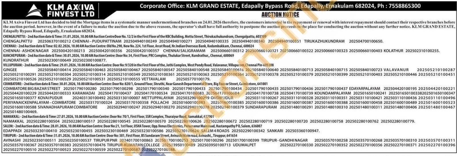 KLM Axiva Finvest Ltd Gold Auctions Auction in Ernakulam