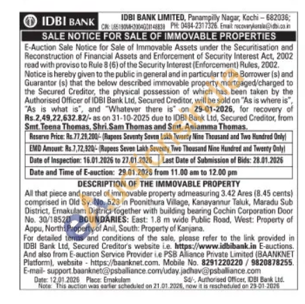 All that piece and parcel of immovable property admeasuring 3.42 Ares (8.45 cents) comprised in Old Sy. No. 523 in Poonithura Village, Kanayannur Taluk, Maradu Sub District, Emakulam District together with building bearing Cochin Corporation Door No. 30/18520.