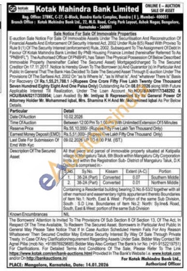 All that piece and parcel of immovable property situated at Katpulla village of Mangaluru Tatuk, 9th Block within Mangaluru City Corporation lista and within the Registration Sub-District of Mangaluru Taluk, D.K District & comprised SNO SyNo Kosam Extent (A-C Portion 136-24 (Part Converted 0.07 Southem Middle 2. 38-24 (Part) Converted 0.01 Northem Middle Containing a Presidential building bearing D. No 8-53/2 together with all other mamool and easemendary nights appurtenant therelo Boundaries of Item No.1: North East & West Portion of the same Sub Division South SD Line Boundaries of tem No.2: North: Syline& Road, South East & West portion of the same Sub Ovision