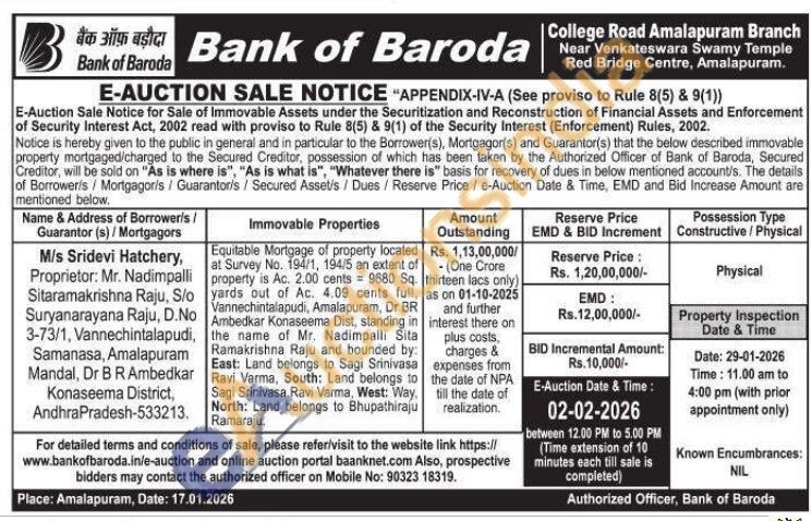 Equitable Mortgage of property located at Survey No. 194/1, 194/5 an extent of property is Ac. 2.00 cents 9680 Sq. yards out of Ac. 4.09 cents full, Vannechintalapudi, Amalapuram, Dr BR Ambedkar Konaseema Dist, standing in the name of Mr. Nadimpalli Sita Ramakrishna Raju and bounded by: East: Land belongs to Sagi Srinivasa Ravi Varma, South: Land belongs to Sagi Srinivasa Ravi Varma, West: Way, North: Land belongs to Bhupathiraju Ramaraju.