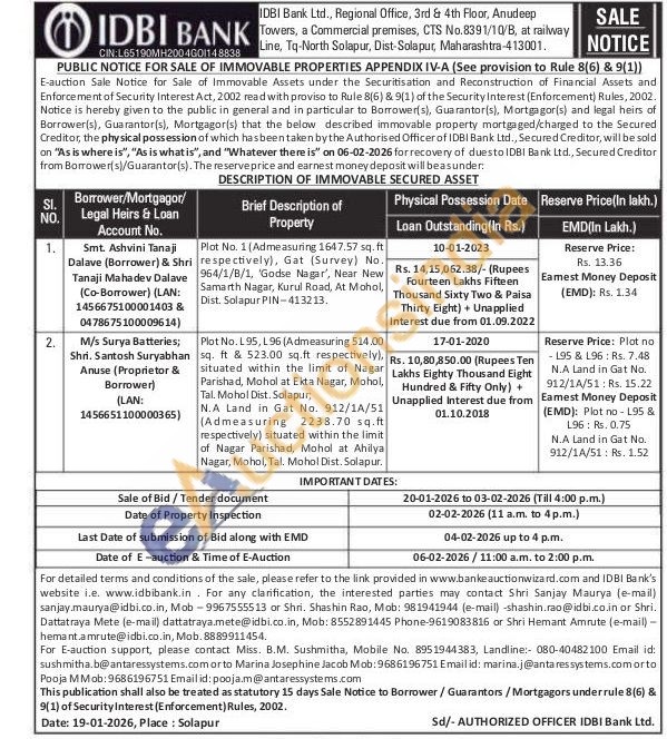 Plot No. 195, L96 (Admeasuring 514.00 sq. ft & 523.00 sq.ft respectively), situated within the limit of Nagar Parishad, Mohol at Ekta Nagar, Mohol, Tal. Mohol Dist. Solapur;