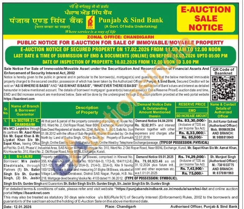 Property measuring 09 Biswe 03 Biswasi, comprised in Khewat No. 355, Khatauni No. 695, Khasra No. 183//16(4-0), 17(3-8), 184//11(2-8), 12(1-12), 18(4-0), 19(4-0), 20(4-0), 21(4-0), 22(4-0), Kite 9 having 183/12560 share in total land measuring 31 Bigha 08 Biswa, situated at Village Lalru, Tehsil Derabassi, Distrid SAS Nagar, Punjab, H.B. No. 218, Mortgage deed bearing Vasika No. 4103 dated 11.06.2012