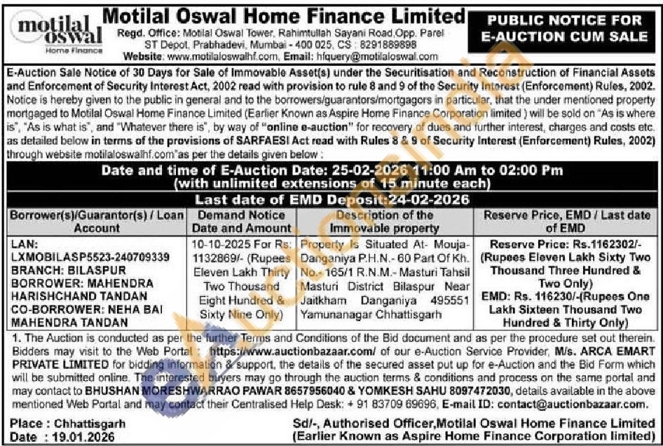 Property Is Situated At- Mouja-Danganiya P.H.N.- 60 Part Of Kh. No.-165/1 R.N.M.-Masturi Tahsil Masturi District Bilaspur Near Jaitkham Danganiya 495551 Yamunanagar Chhattisgarh