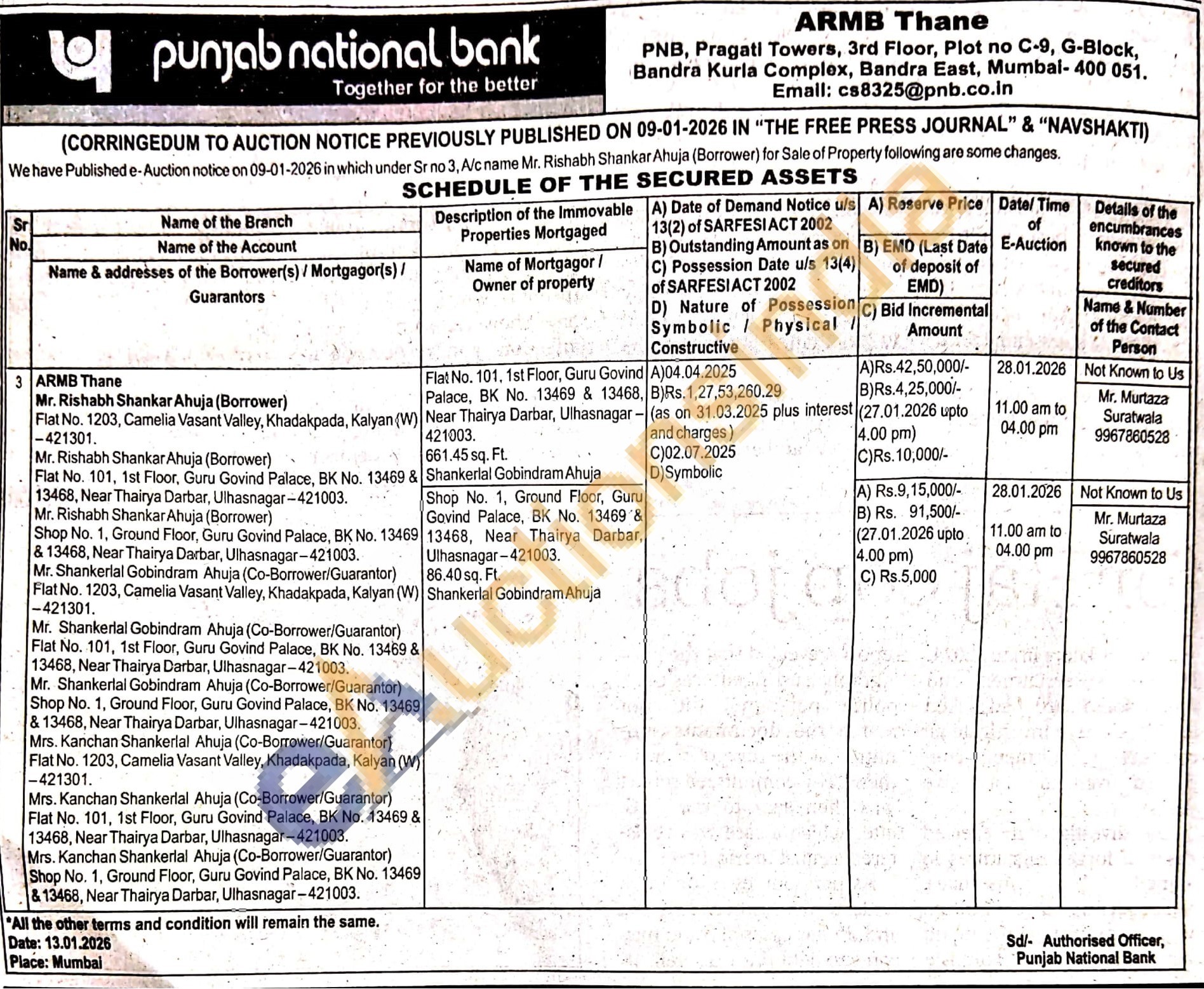 Shop No. 1, Ground Floor, Guru Govind Palace, BK No. 13469 & 13468, Near Thairya Darbar, Ulhasnagar-421003. 86.40 sq. Ft. Shankerlal Gobindram Ahuja