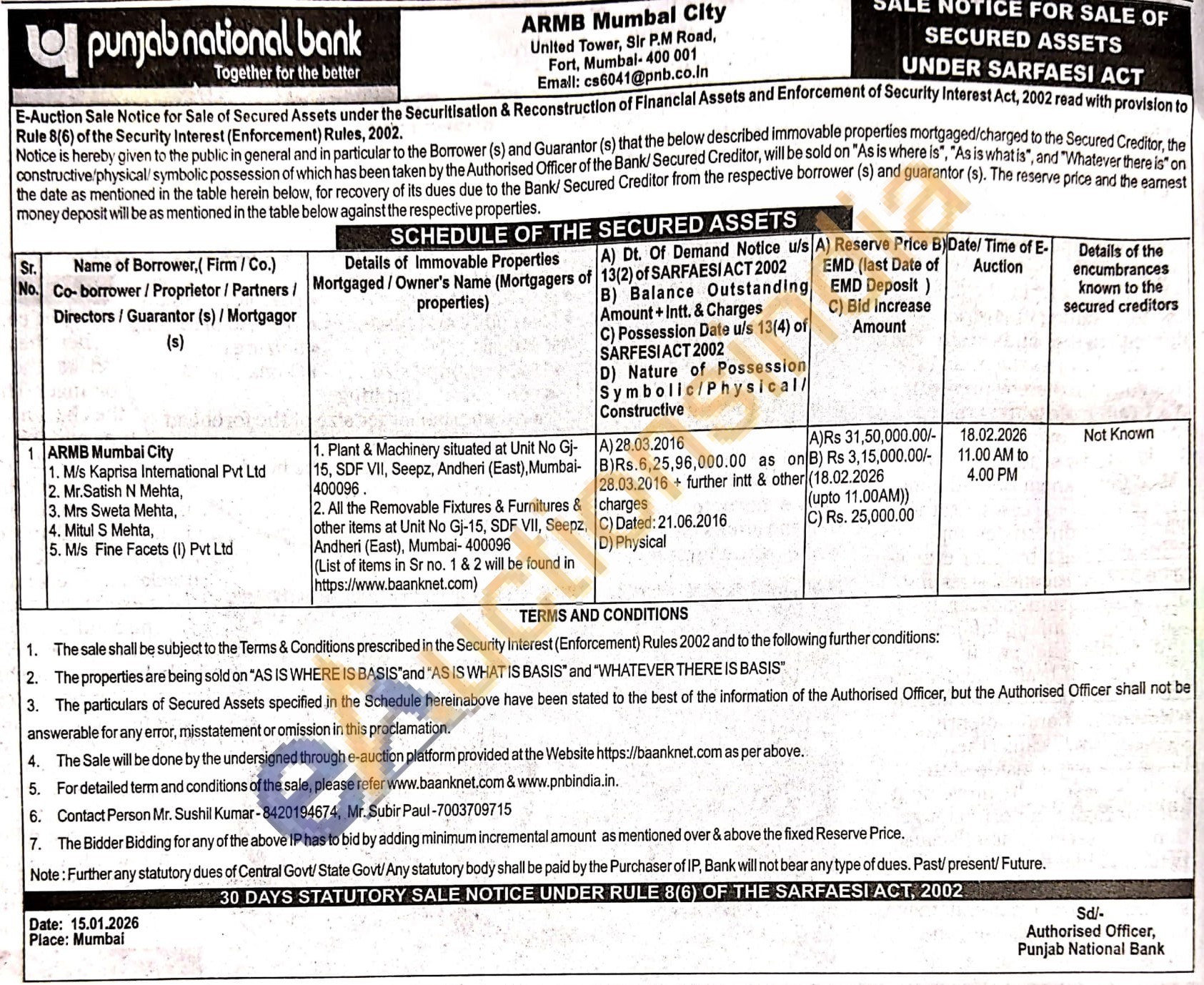 2. All the Removable Fixtures & Furnitures & other items at Unit No Gj-15, SDF VII, Seepz, Andheri (East), Mumbai-400096 (List of items in Sr no. 1 & 2 will be found in https://www.baanknet.com)