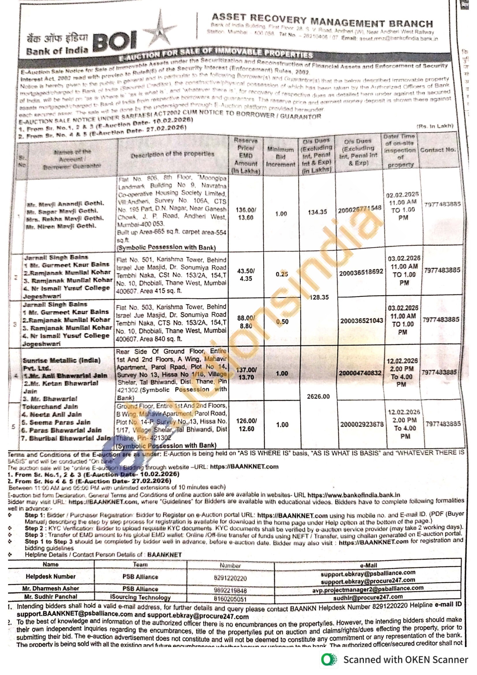 Flat No. 806, 8th Floor, "Moongipa Landmark Bullding No 9. Navratna Co-operative Housing Society Limited, Vill Andheri, Survey No. 106A, CTS No. 195 Part, D.N. Nagar, Near Ganesh Chowk, J. P. Road, Andheri West, Mumbai-400 053. Built up Area-665 sq.ft. carpet area-554 sq.ft (Symbolic Possession with Bank)