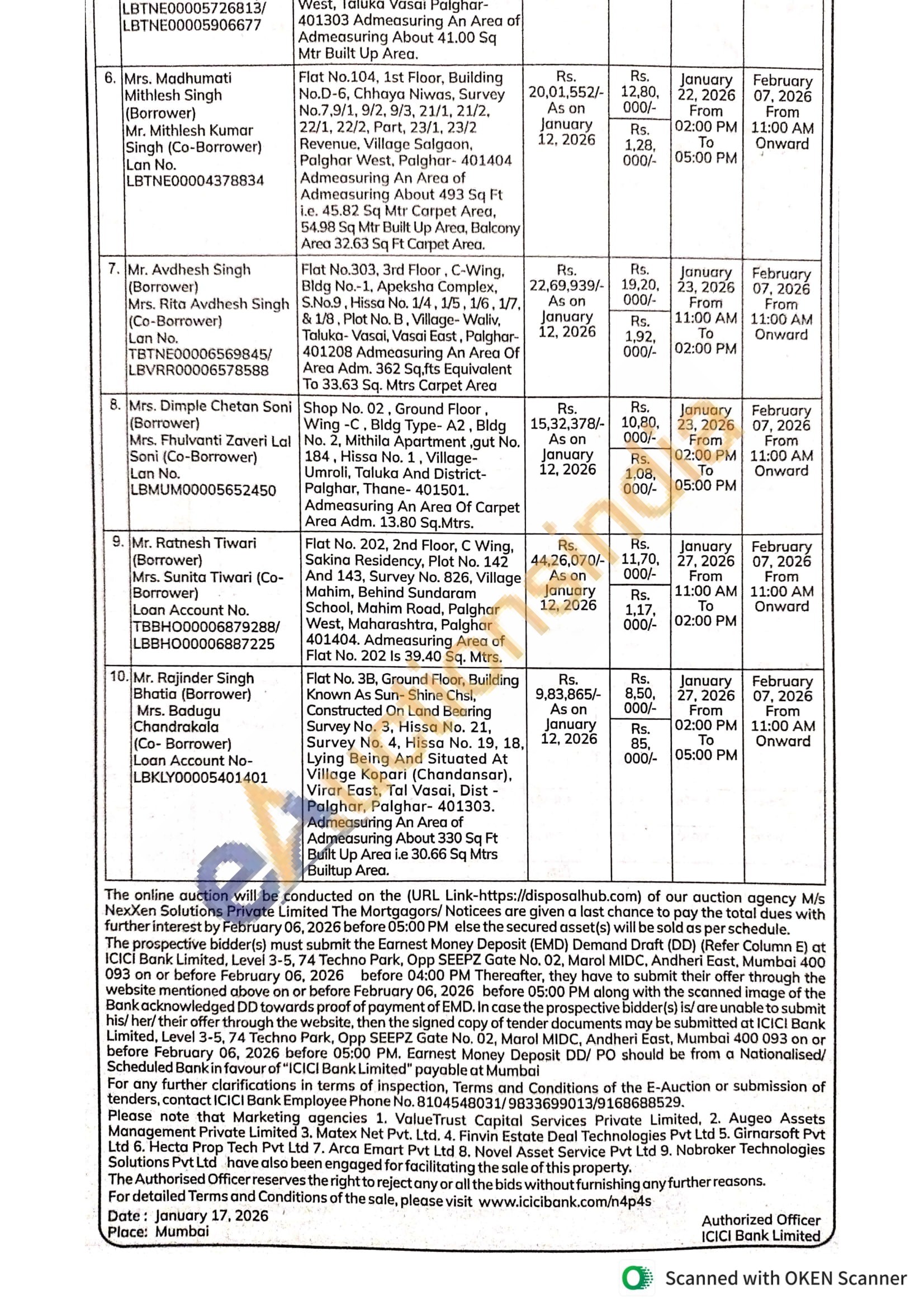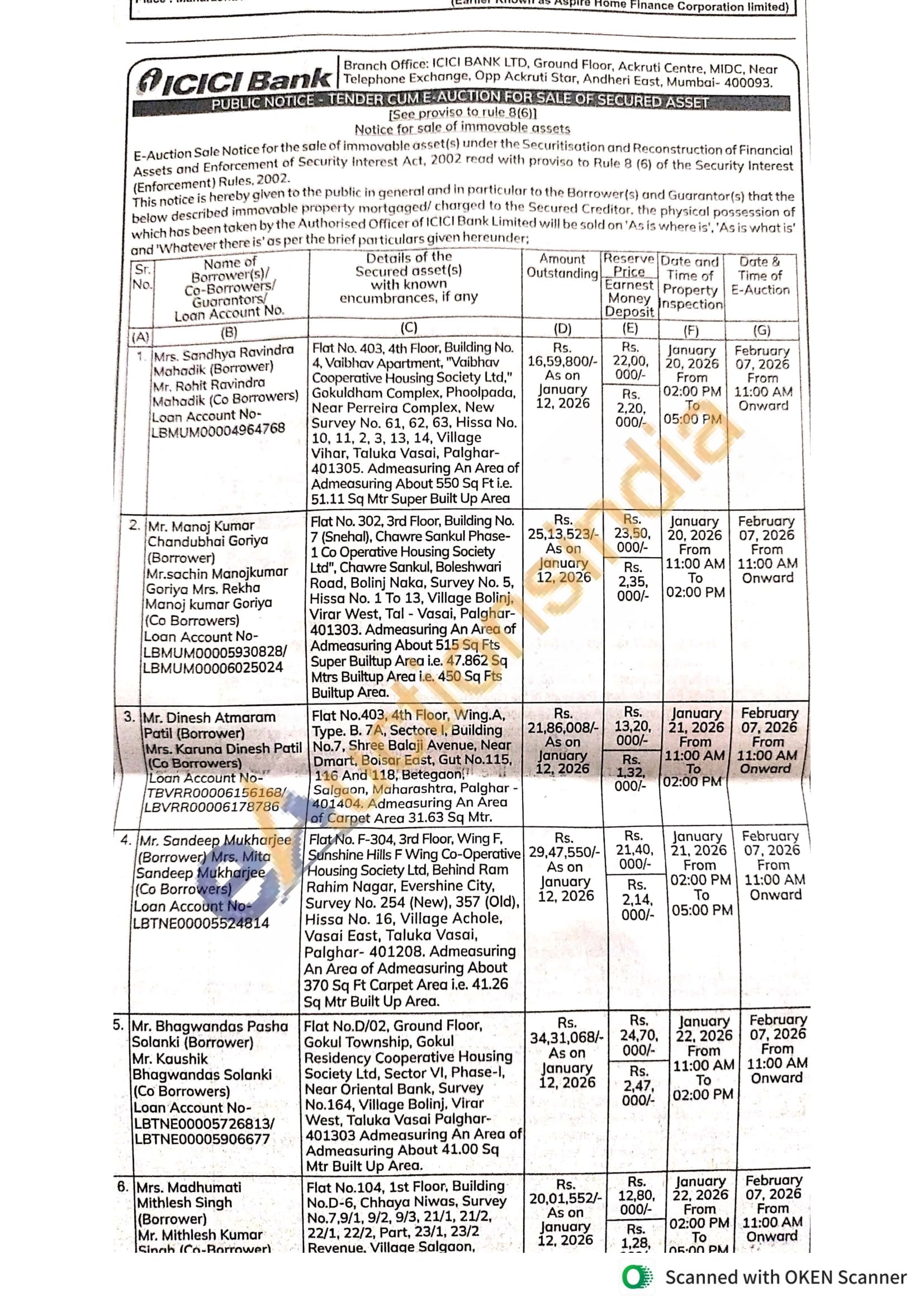 Flat No. 403, 4th Floor, Building No. 4. Vaibhav Apartment, "Vaibhav Cooperative Housing Society Ltd." Gokuldham Complex, Phoolpada, Near Perreira Complex, New Survey No. 61, 62, 63, Hissa No. 10, 11, 2, 3, 13, 14, Village Vihar, Taluka Vasai, Palghar-401305. Admeasuring An Area of Admeasuring About 550 Sq Ft i.e. 51.11 Sq Mtr Super Built Up Area