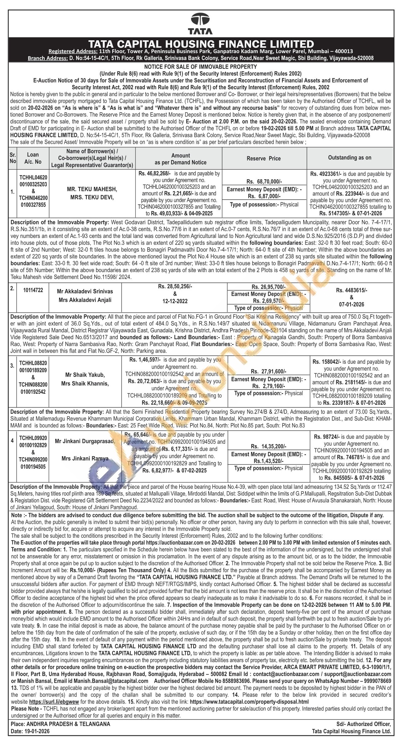 Description of the Immovable Property: All that the piece and parcel of the House bearing House No.4-39, with open place total land admeasuring 134.52 Sq. Yards or 112.47 Sq.Meters, having titles roof plinth area 180 Sq.feets, situated at Mallupalli Village, Mirdoddi Mandal, Dist: Siddipet within the limits of G.P.Mallupalli, Regsitration Sub-Dist Dubbak & Registation Dist. vide Registered Gift Settlement Deed No.2234/2022 and bounded as follows:- Boundaries:- East: Road, West: House of Avusula Shanakaraiah, North: House of Jinkani Yellagoud, South: House of Jinkani Parshagoud.