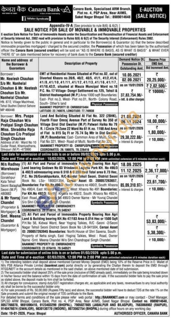 3) (1) All Part and Parcel of Immovable Property Bearing Non Agri Land bearing Godown No 03 Vrindavan Logistic Park KH. No 490/3 & 492/3 admeasuring area 0.510 & 0.220 Hect Total area 0.73 Hec, P.C. No 26/Gorakhpurkala, R/C-Bandol Tehsil Seoni, District Seoni Book No. LSo- 180031354, Cersai Asset ID: 200057263657 Boundaries: For KH. No 490/3: North: Khasra no 490/2, South: Khasra No 490/4, East Khasra No. 492/3, West Khasra No 491 Boundaries: For KH.No 492/3: North Khasra no 492/2, South Khasra No 492/4, East Road, West: Khasra No 490/3 Owner Name -Mr Yuvraj Chandel Sio Shri Chandrapal Singh Chandel