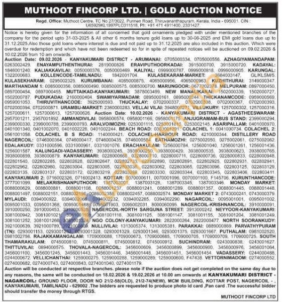 Muthoot Fincorp Ltd Gold Auctions Auction in Kanyakumari