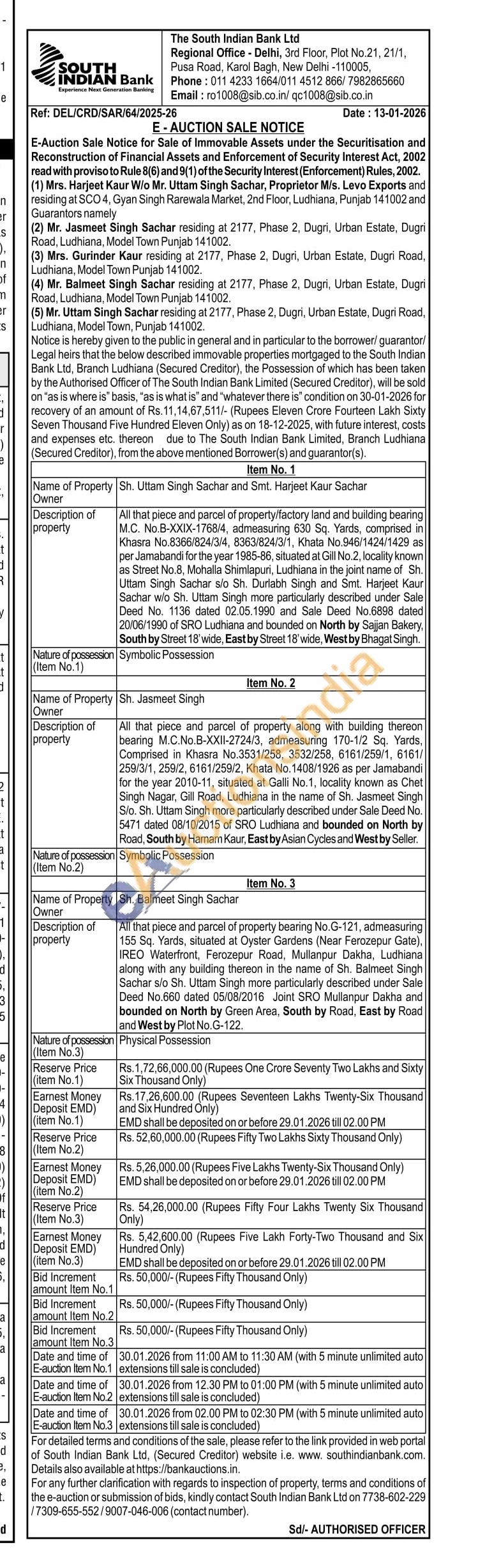 All that piece and sertel of property along with building thereon bearing MC.No B-XXX-2724/3 admeasuring 170-1/2 Sa. Yards Comprised in Khasre No 3511/258, 3532258 1/258, 3532258, 6161/256/1, 6181/25931,252, 6161-259/2, Khali No. 1408/1925 as per Jamabandi for the year 2010-11, silueted at Gali No.1, incally known as Chet Singh Nagar, Gill Road Ludhiana in the name of Sh. Jasmeet Singh St. Sh. Uttan Singh more particularly described under Sale Deed No 5471 dated 08/10/2015 of SRO Ludhiana and bounded on North by Road South by Haman Kaur. East by Asian Cycles and West by Seller
