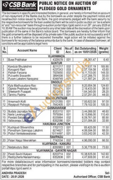 CSB Bank Gold Auctions Auction in Vijayawada