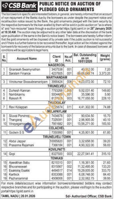 CSB Bank Gold Auctions Auction in Kanyakumari