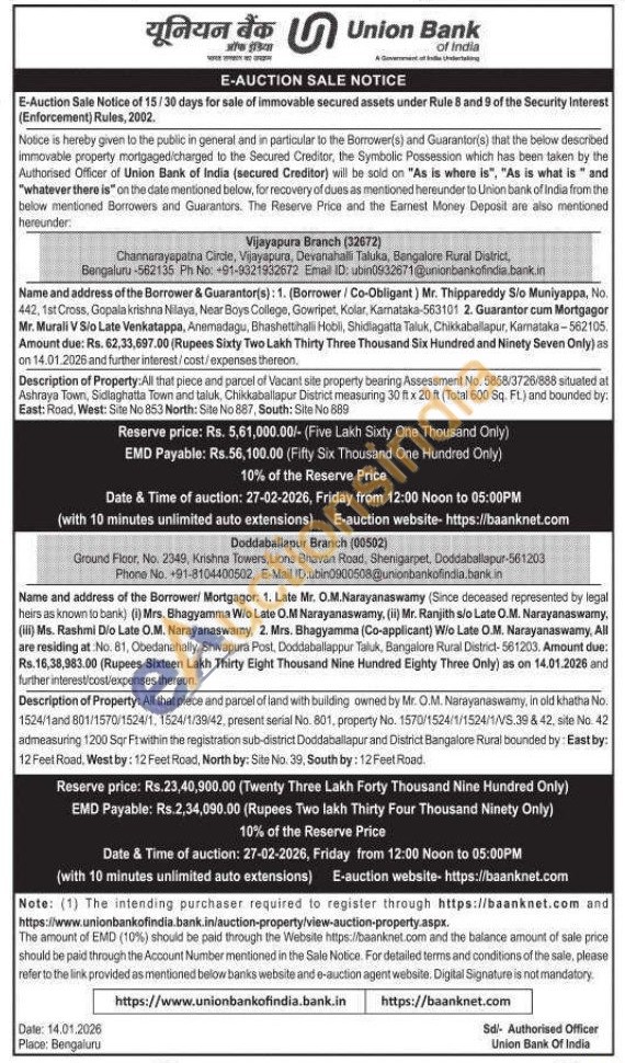 All that piece and parcel of land with building owned by Mr. O.M. Narayanaswamy, in old khatha No. 1524/1 and 801/1570/1524/1, 1524/1/39/42, present serial No. 801, property No. 1570/1524/1/1524/1/VS.39 & 42. site No. 42 admeasuring 1200 Sqr Ft within the registration sub-district Doddaballapur and District Bangalore Rural bounded by: East by: 12 Feet Road, West by: 12 Feet Road, North by: Site No. 39, South by: 12 Feet Road