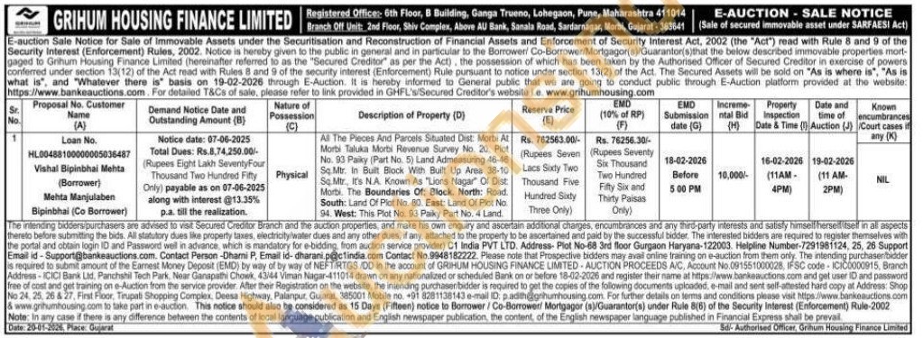 All The Pieces And Parcels Situated Dist: Morbi At Morbi Taluka Morbi Revenue Survey No. 20, Plot No. 33 Pašky (Part No. 5) Land Admeasuring 46-46 Sq.Mtr. In Bult Block With Built Up Ares 38-10 Sq.Mtr., It's N.A. Known As "Lions Nagar Of Dist. Morbi. The Boundaries Of: Block. North: Road. South: Land Of Plot No. 80. East: Land Of Plot No 94. West: This Plot No. 93 Paiky Part No. 4 Land.