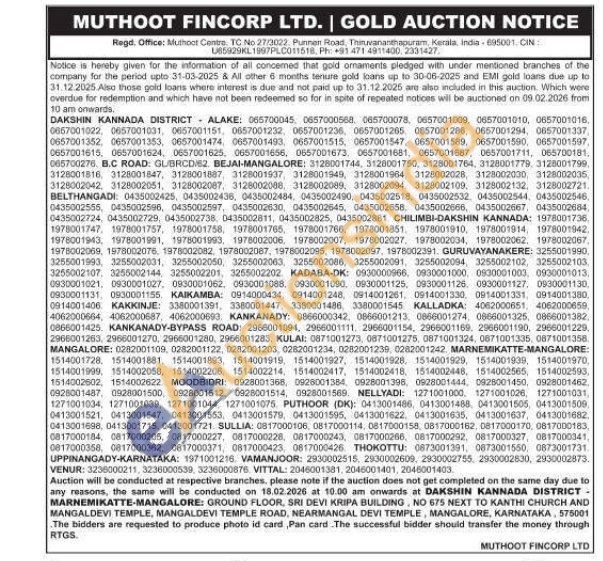 Muthoot Fincorp Ltd Gold Auctions Auction in Dakshina Kannada