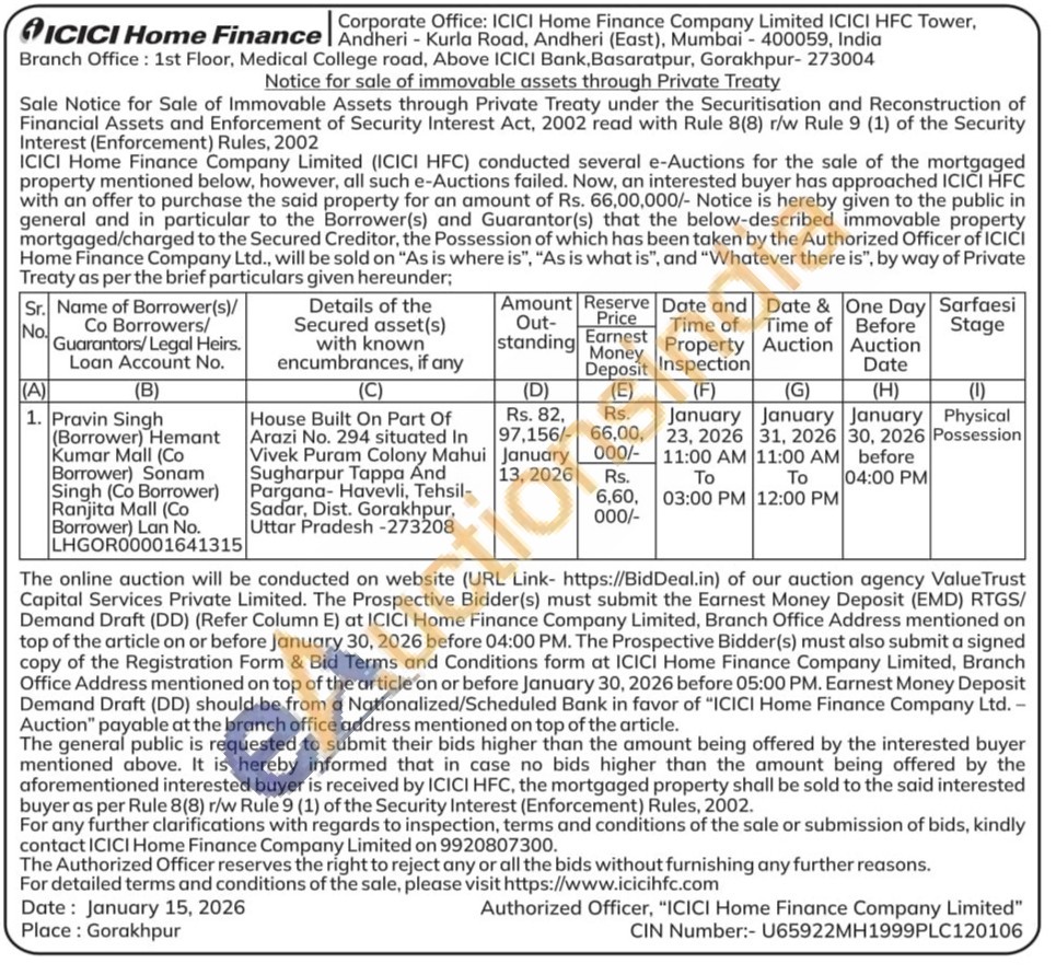 House Built On Part Of Arazi No. 294 situated In Vivek Puram Colony Colony Mahui Sugharpur Tappa Anda Pargana Pargana-Havevli, Tehsil-Sadar, Dist. Gorakhpur, Uttar Pradesh -273208