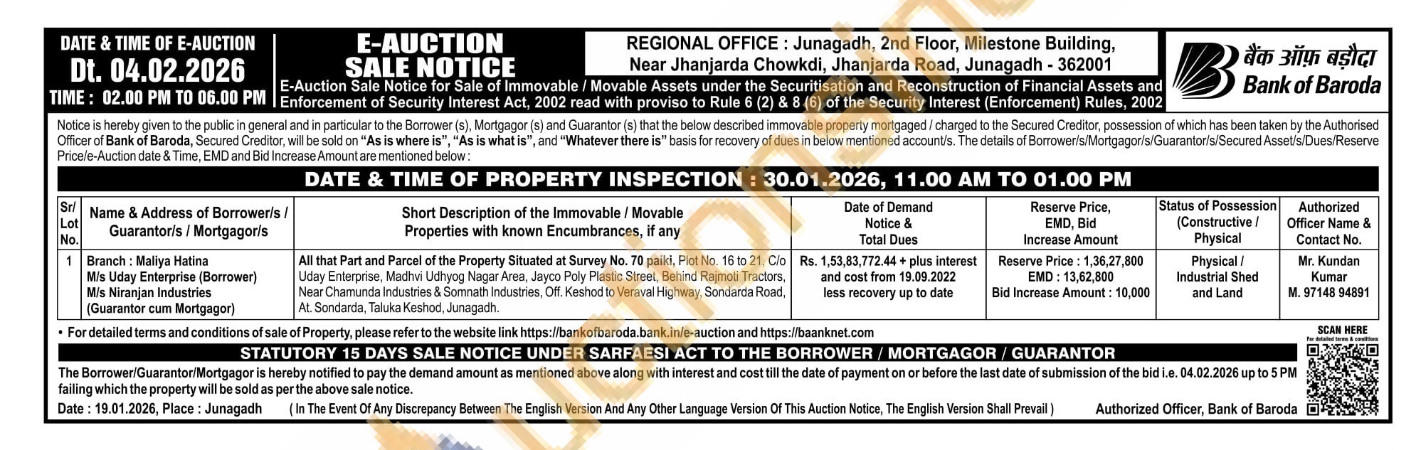 All that Part and Parcel of the Property Situated at Survey No. 70 paiki, Plot No. 16 to 21, C/o Uday Enterprise, Madhvi Udhyog Nagar Area, Jayco Poly Plastic Street, Behind Rajmoti Tractors, Near Chamunda Industries & Somnath Industries, Off. Keshod to Veraval Highway, Sondarda Road, At. Sondarda, Taluka Keshod, Junagadh