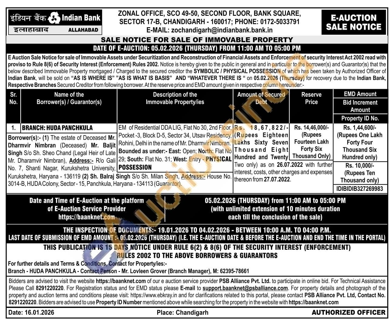 EM of Residential DDA LIG, Flat No 30, 2nd Floor, Pocket -3, Block D-5, Sector 34, Utsav Residency Rohini, Delhi in the name of Mr. Dharmvir Nimbran. Bounded as under:- East: Open; North: Flat No 29; South: Flat No. 31; West: Entry - PHYSICAL POSSESSION