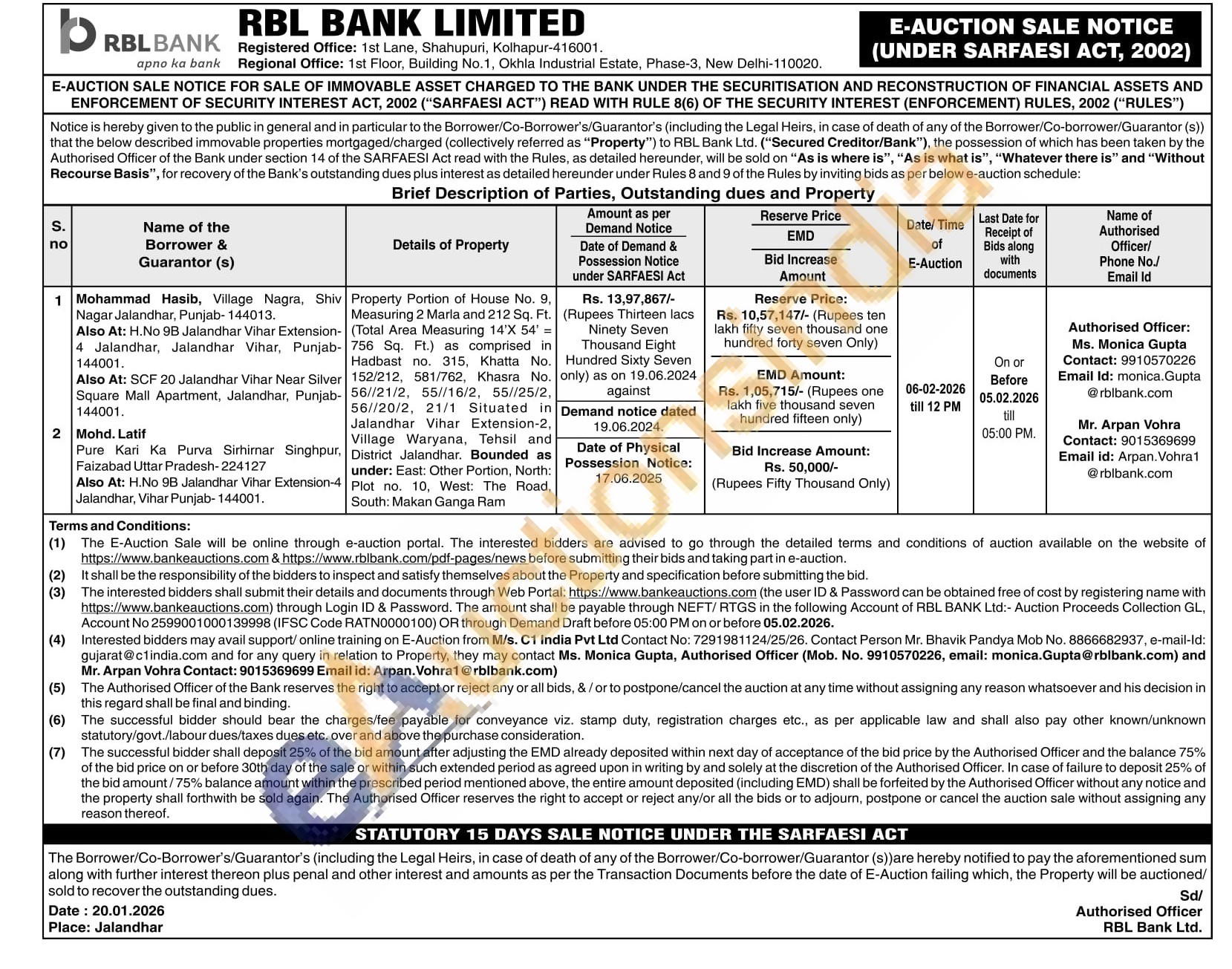 Ms. Monica Gupta : 9910570226 and Mr. Arpan Vohra : 9015369699